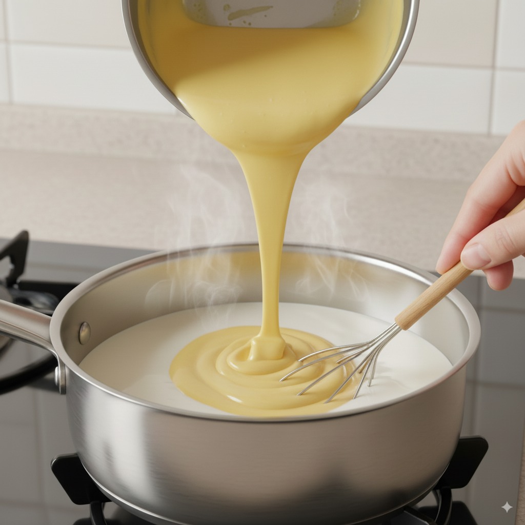Heat 2 cups of milk in a saucepan. Once it’s warm, gently pour in the custard paste while stirring continuously. Cook the mixture until it thickens into a velvety custard. Allow it to cool completely before moving on. Cooling helps the flavors blend and gives a better texture to your final ice cream.